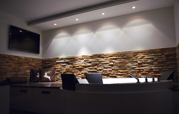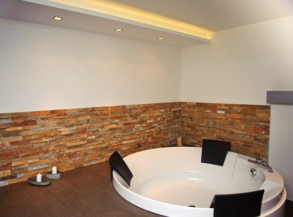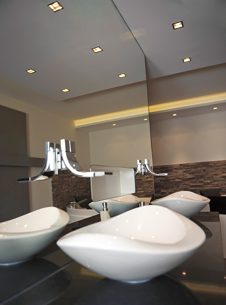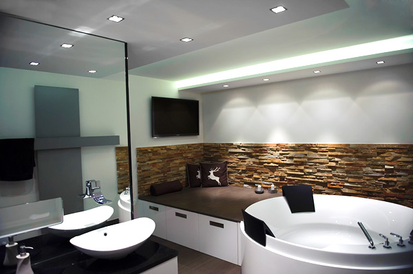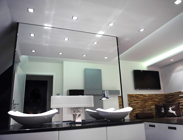 Wellnessbad Bietigheim Leistungen: Planung Lichtsystem, Planung Decke, Lichtsteuerung: Tronic-Tastdimmer , Auswahl der Leuchtsysteme.
